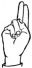 На ћирилици написано ГАВРИЛО СЕКУЛОВ састоји се из 14 слова [?]. Исписано ћириличном једноручном азбуком за глувонеме: